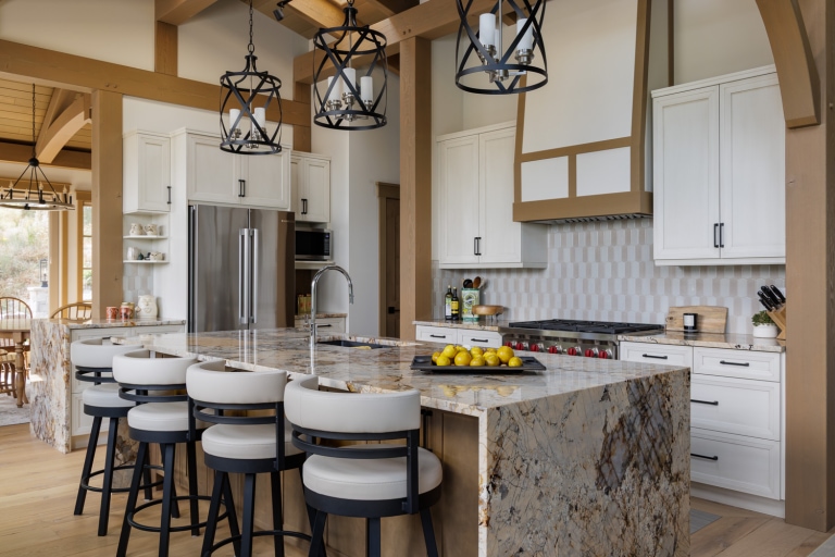 Classical and Traditional touches mix effortlessly with clean lines and a light color palette, making this renovation sing with unique details. Textures combine with unique shapes and profiles to keep the eye interested, while the color palette is soothing and light. Custom furniture and upholstery were designed to make better functional use of the original layout.